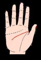 智慧线:在中国手相学中被称为“人型”。它是人体手掌的三条主线之一,位于手掌中心,起于食指第三关节腔边缘,抛物线延伸至小鱼际,延伸至中指、无名指或小指下方。