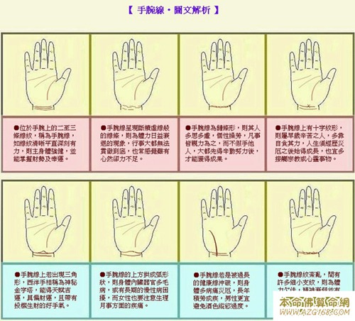 一个手腕线条深邃清晰,没有间断的人,说明他精力充沛,身体健康。如果线条断了、漏了、岛状线条或者剪成了一些横线、杂线,人的精神不足,体质差,可能会经常出现小病。